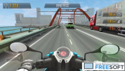 Traffic Rider – увлекательные гонки для портативных устройств на платформе Android. Отличительной чертой игры является реальный звук двигателя, который записан с настоящего байка. Игра имеет высококачественную графику, поэтому покорять дороги пользователь будет в любое время суток на красивых городских и загородных локациях. Игра выполнена с видом от первого лица, другими словами, пользователь будет думать, что он реально находится за рулем мотоцикла.
