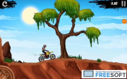 Игра имеет 2D графику в мультяшном стиле. Отличается детальной прорисовкой мотоциклиста, транспортного средства и ландшафта трассы. Управлять мотоциклом очень просто, для чего предусмотрено всего 4 кнопки – газ, тормоз и наклоны в стороны. Благодаря всего четырем тапам пользователь может на своем байке выполнять сумасшедшие прыжки и трюки.